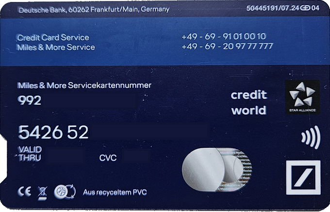 | 16:29, 6. Dez. 2025 | MilesMore Blue DB hinten.png (Datei) | 443 KB | neue Miles&More Kreditkarte, Foto hinten | 1 | |